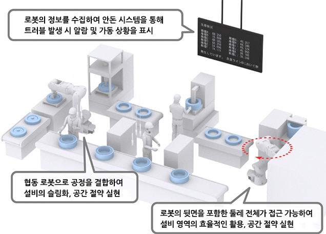 - 생산 상황에 따른 유연한 제조와 안전 펜스가 필요 없는 생산 라인을 구축하고 싶다.