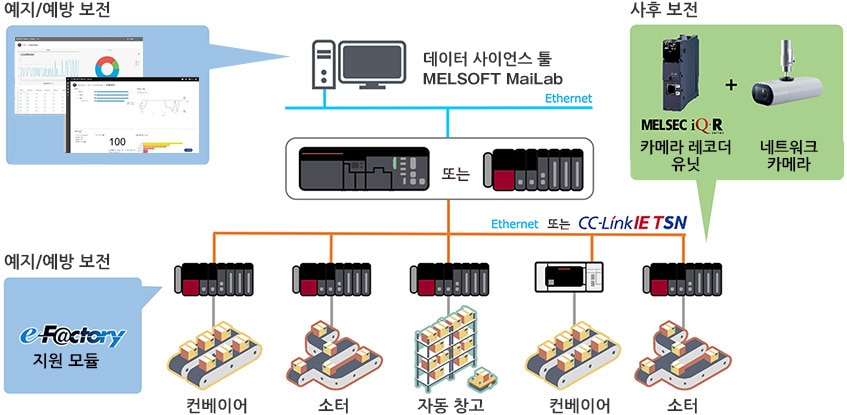 데이터 분석을 통한 예지 보전의 실현과 각 FA 기기가 보유한 수명 진단 기능을 통해 제로 다운 타임을 구현합니다.