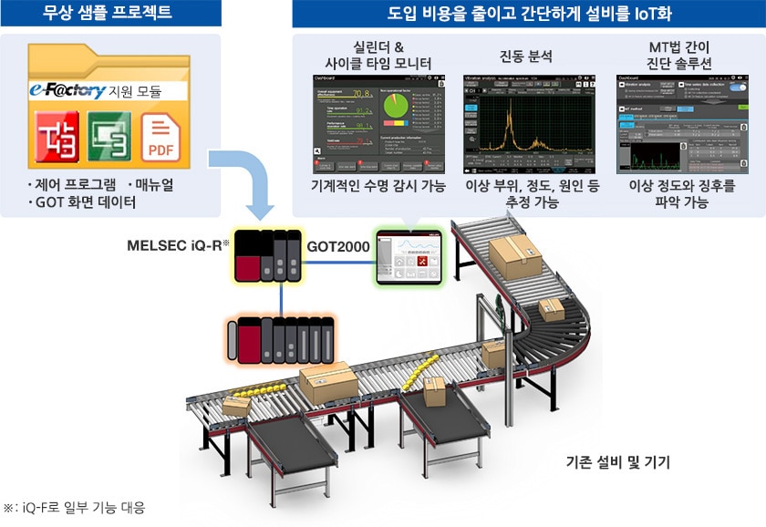 e-F@ctory 지원 모듈을 활용하면 각종 설비 및 장치의 이상 감시를 실현할 수 있습니다.