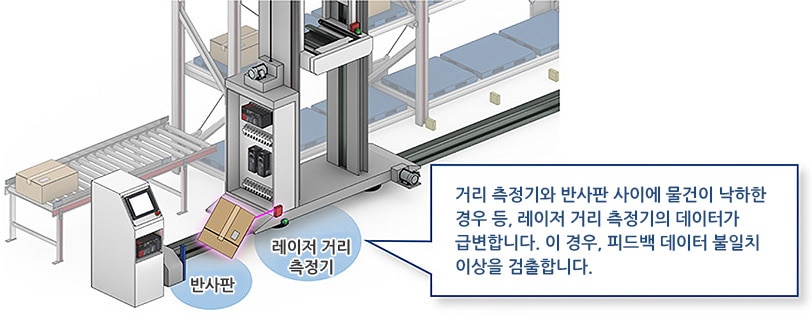 레이저 거리 측정기로 대차 위치를 검출하여 위치 결정 제어를 실행