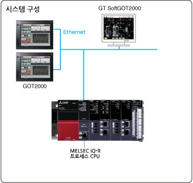 GOT에서 계장 감시에 필요한 컨트롤 패널, 튜닝 화면, 경보 일람 화면, 트렌드 화면 등의 표준 화면은 PX Developer 모니터 툴의 GOT 화면 생성 기능으로 쉽게 작성할 수 있었습니다. 또한, 범용 PLC인 MELSEC iQ-R을 기반으로 하기 때문에 프로그램 변경도 쉽게 할 수 있습니다.