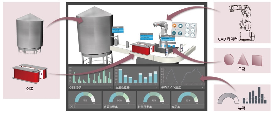 다양한 2D 및 3D*2심볼과 CAD 데이터 가져오기, 상황에 따른 색상과 크기 변경을 통해 깔끔하고 보기 쉬운 그래픽 화면을 높은 가성비로 작성할 수 있습니다.