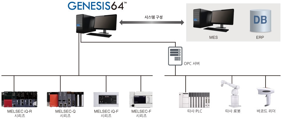 당사 FA 기기와 직접 접속할 수 있을 뿐만 아니라, OPC™, BACnet®, MODBUS®와 같은 업계 표준 개방형 프로토콜, SQL Server®, Oracle®, ODBC 등 다양한 데이터베이스에도 대응합니다.