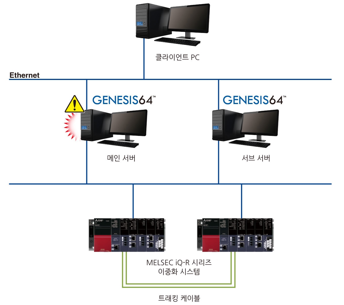 메인계 및 서브계 서버의 이중화로 서버 이상에 의한 설비 정지, 데이터 누락을 방지합니다.