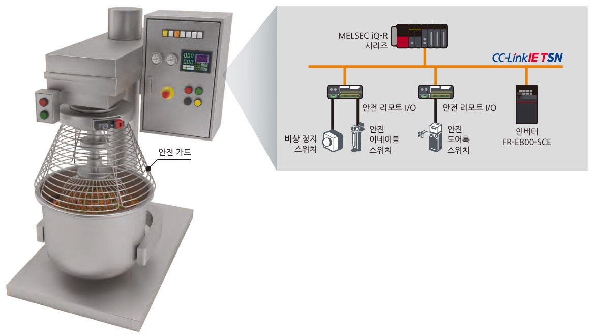 안전 PLC와 보호 장치(안전 가드)를 조합함으로써, 보호 장치가 장착되어 있지 않으면 기계를 운전할 수 없는 인터록 장치를 갖춘 안전한 기계로 사용할 수 있습니다.