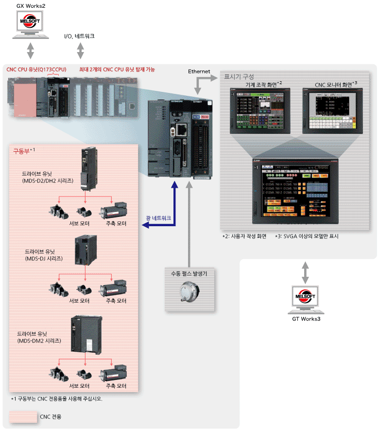 C70 시리즈 iQ Platform 대응 CNC CPU 유닛 Q173NCCPU는 안전 신호 유닛 Q173SXY와 조합하여 안전 시스템을 구축할 수 있습니다.