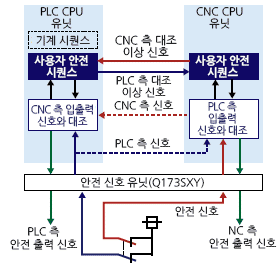 PLC CPU 유닛 및 CNC CPU 유닛 2개의 CPU 유닛에서 사용자 안전 시퀀스를 실행합니다.